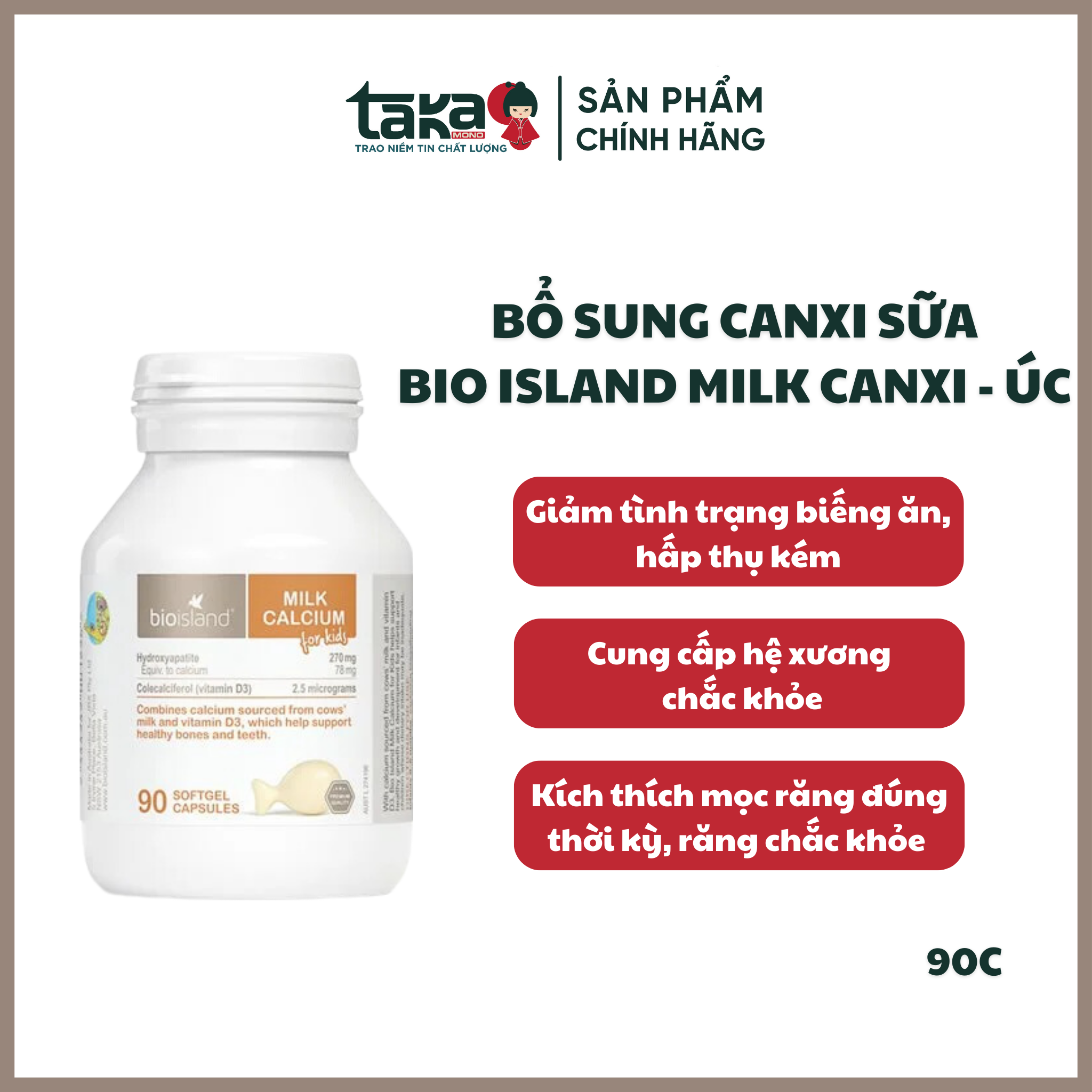 Viên Uống Bổ Sung Canxi Milk Calcium Bone Care Bio Island Úc 90 Viên